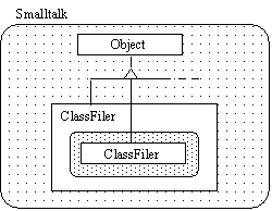 Figure 4 depicts an example of how this principle can be applied. Because of its simplicity, the full code for this example can be found in the appendix. The module class ClassFiler is derived from the standard Smalltalk class ClassReader. This class is used to file Smalltalk source code in and out of the system, usually using an instance of class FileStream.